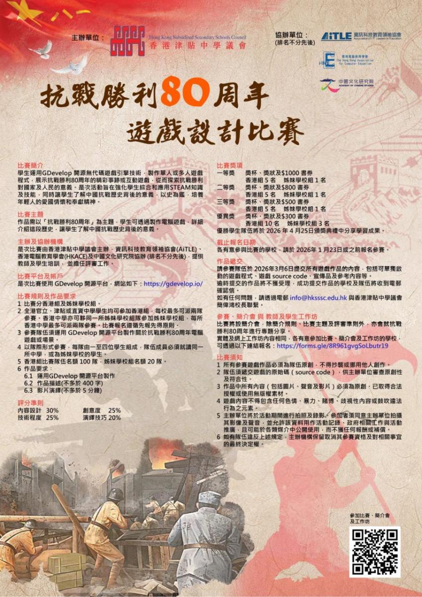 香港津貼中學議會 - 抗戰勝利80周年遊戲設計比賽(80th Anniversary of Victory in the Anti-Japanese War G...What’s New