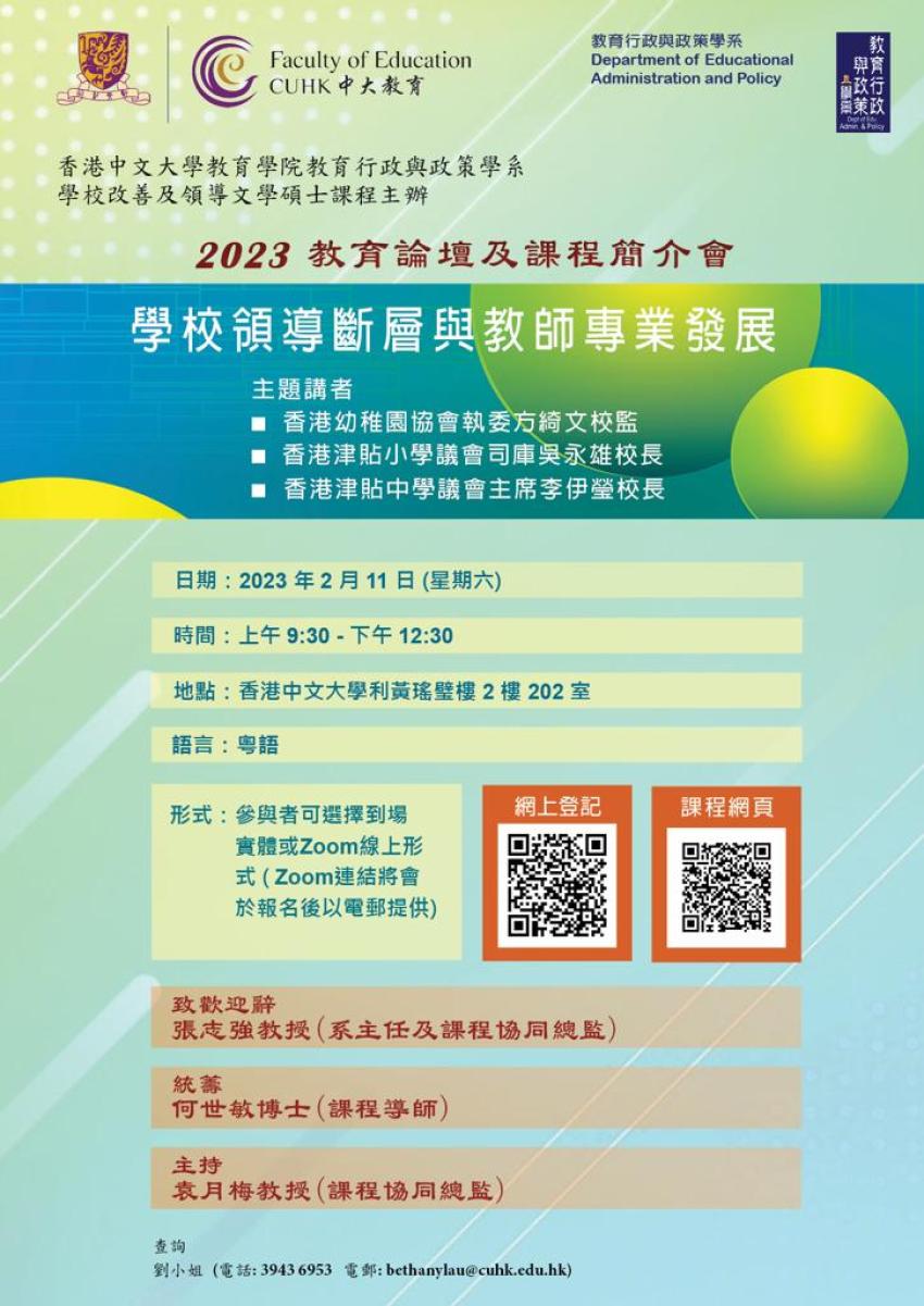 為慶祝中華人民共和國香港特別行政區成立二十五周年,教育統籌委員會將於12月8日下午於灣仔香港會議展覽中心「學與教博覽2022」,舉行一場名為「為未來塑造教育」的教育研討會,主題為探討數碼時代下的教育如何促進學生健康成長及展望教育的未來路向,開啟香港教育在國際舞台上的嶄新篇章。 是次研討會將包括一系列的主題演講和專題討論,匯聚一眾來自教育和創科界的學者及業界專家精英聚首一堂,以多元角度分享他們就學生健康成長和數碼時代下關於教育的真知灼見。同時,集合不同持分者現身的宣傳影片將會首播,展示香港教育制度的豐碩成果和獨特優勢、融入國家發展大局的機遇,以及分享香港的成功教育故事。 有關研討會的詳情,請瀏覽專屬網站 www.e-c.edu.hk/ecseminar 有關報名詳情,請登入學與教博覽網頁 https://lte2022.jemexonline.com/programme/v2akKval/education-commission-seminar-shaping-the-education-for-future 如有查詢,請致電2624 1000 與香港教育城,或3509 8574或3509 8571與教育統籌委員會秘書處聯絡。